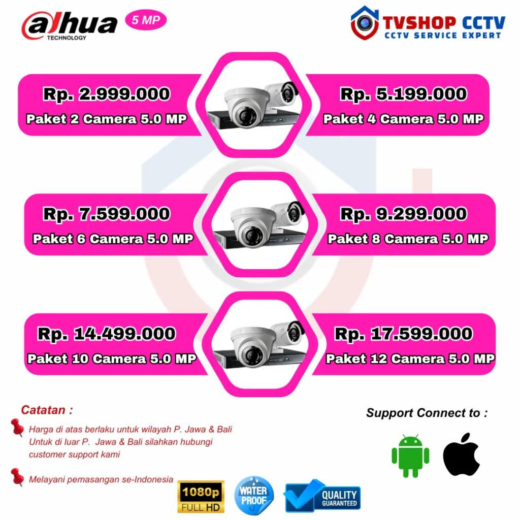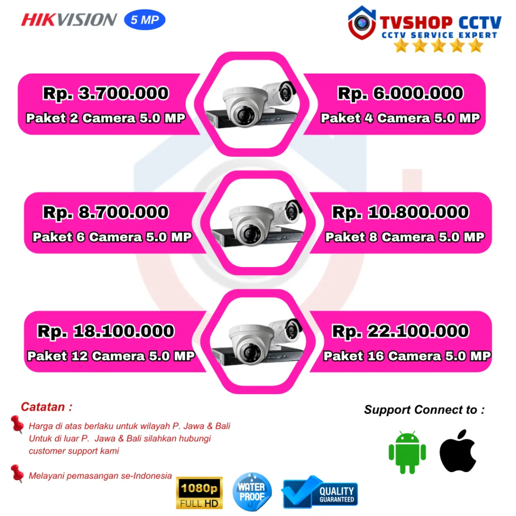 Kami adalah Dealer Authorized Hikvision No 1 dan terbesar di Indonesia. Percayakan pemasangan CCTV Anda kepada kami, dan kami akan membantu Anda memilih solusi terbaik sesuai dengan kebutuhan keamanan Anda. Pasang CCTV dari kami memungkinkan Anda untuk cctv pantau hp dengan mudah melalui aplikasi Hikvision.