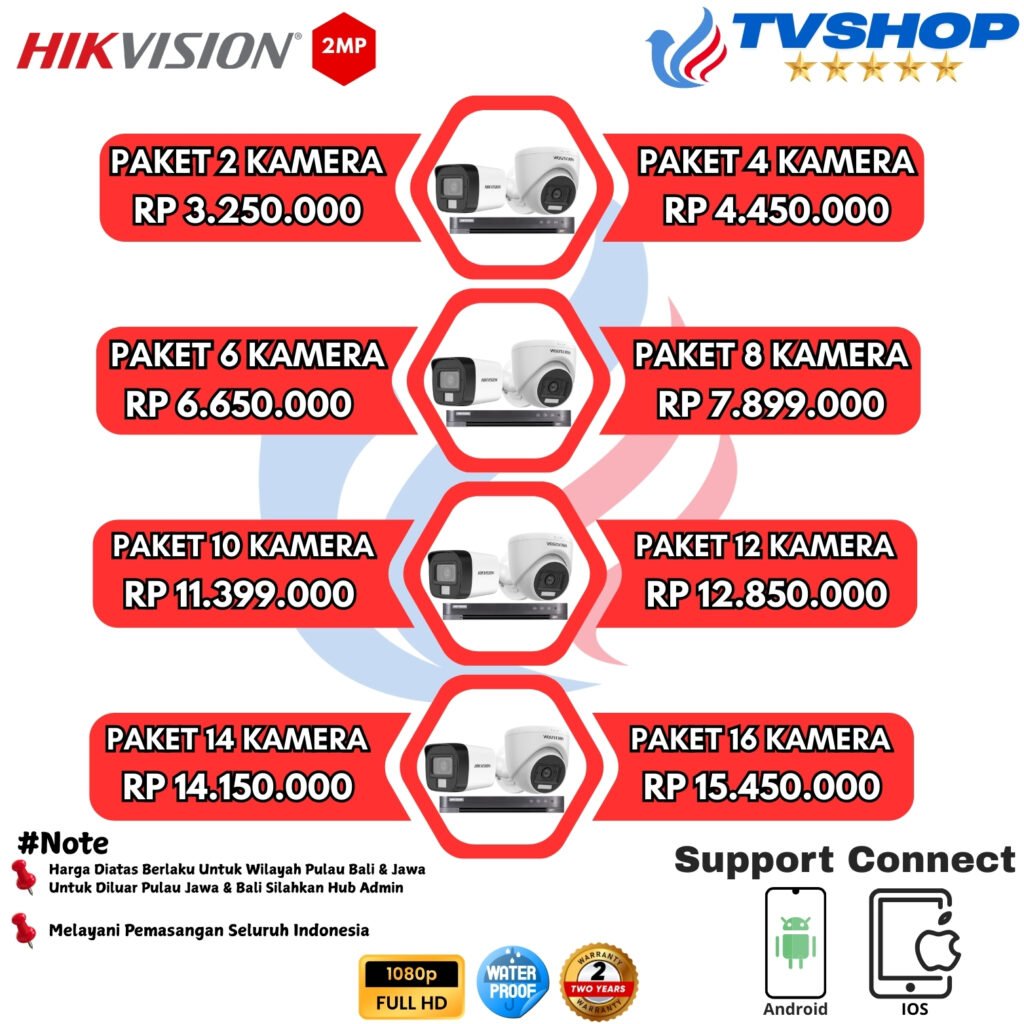 HIKVISION merupakan solusi keamanan modern dengan kualitas gambar tajam, teknologi Night Vision canggih, dan dukungan pemantauan jarak jauh melalui aplikasi Hik-Connect. Dilengkapi fitur AI pintar seperti deteksi wajah, gerakan, dan plat nomor, Hikvision mampu memberikan pengawasan yang akurat dan efisien